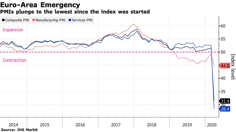 В настоящее время индекс деловой активности (PMI), на фоне пандемии достиг в Европе минимума с 1998 года и установил антирекорд за все время наблюдений. Этот показатель оказался хуже, чем во времена всемирного экономического кризиса 2008-2009 годов.