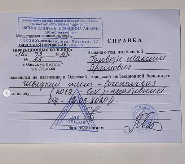"Именно его адрес я сообщил в больнице, по которому я находился на самом деле в связи с карантином, и где мы были абсолютно изолированы от всех, а не фальшивый адрес, как сообщают СМИ. Также я оставил свой контактный номер, по которому меня можно было найти в любое время суток", – отметил Максим.