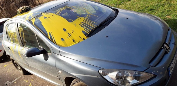 "В Ужгороде облили желтой краской авто депутата горсовета Виктора Щадея. Над крышу поставили похоронный венок. Автомобиль был припаркован на ночь под домом политика", - написал журналист в своем Телеграм-канале.