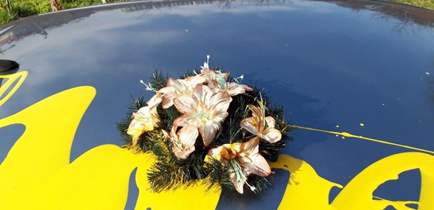 В Ужгороде вандалы облили авто депутата краской и положили на него венок (видео)