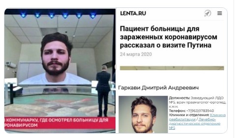 Справедливости ради стоит отметить, что врач Дмитрий Гаркави действительно лежал в больнице из-за пневмонии. Тем не менее приходить в его палату в костюме биозащиты Путину не было необходимости — два анализа подтвердили отсутствие у пациента коронавируса.