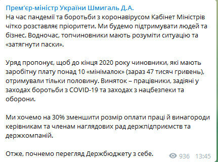 Чиновникам урежут зарплаты до 50%, - Шмыгаль