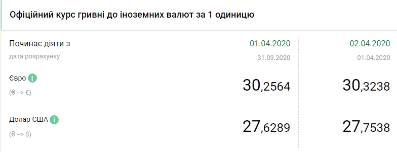 Национальный банк Украины на четверг, 2 апреля, понизил курс гривны на 13 копейки по отношению к доллару и на семь копейку по отношению к евро, передает FaceNews.ua. Об этом свидетельствуют данные на сайте НБУ в среду, 1 апреля.