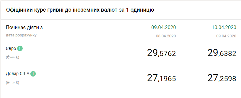 Национальный банк Украины на пятницу, 10 апреля, понизил курс гривны на 6 копеек по отношению к доллару и на 6 копеек по отношению к евро, передает FaceNews.ua. Об этом свидетельствуют данные на сайте регулятора в четверг, 9 апреля.