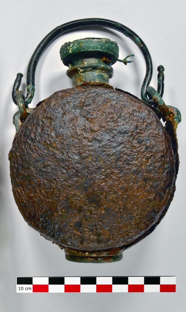 В этих ямах находились артефакты, в том числе монеты, керамика и статуэтки. Также была найдена фляжка римского легионера - лагункула. Вероятно воин принес ее в дар вместе с пищей.Раскопки начались в данном районе, когда в 2016 году в ходе строительства школы обнаружили древние постройки под землей.