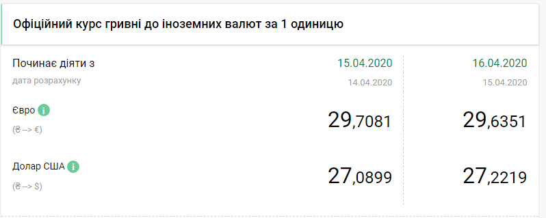 Национальный банк Украины на четверг, 16 апреля, понизил курс гривны более чем на 13 копеек по отношению к доллару и укрепил на 7 копеек по отношению к евро, передает FaceNews.ua. Об этом свидетельствуют данные на сайте регулятора в среду, 15 апреля.