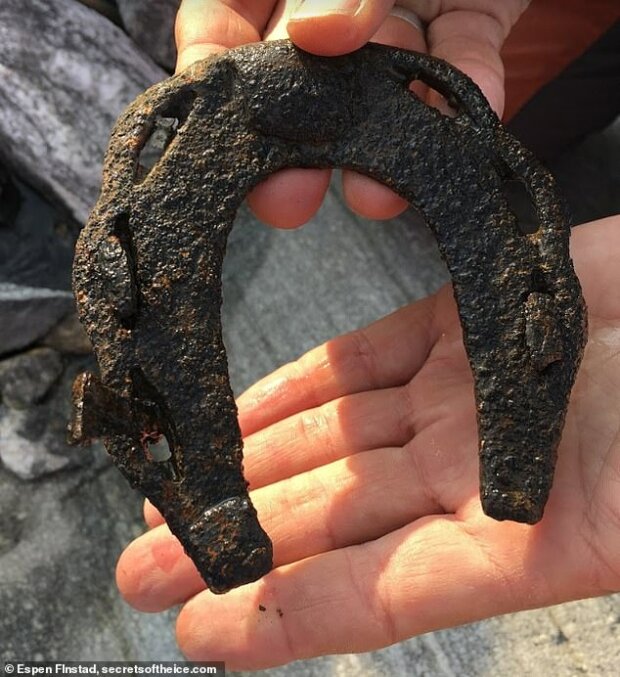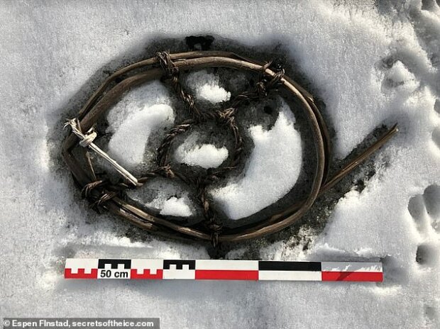 Так, археологам удалось обнаружить череп лошади, снегоступы для нее, трость с рунической надписью, вязаные варежки, иглы и маленький железный ножик.