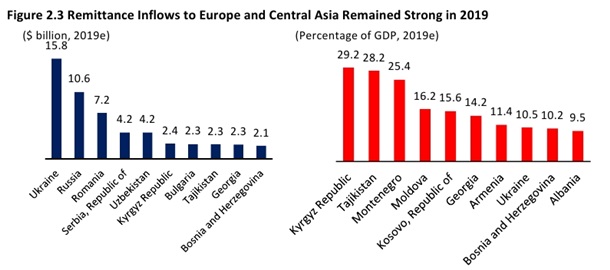 Однако ВБ прогнозирует, что в 2020 году из-за пандемии коронавируса объемы денежных переводов в регионе сократятся на 27,5%.