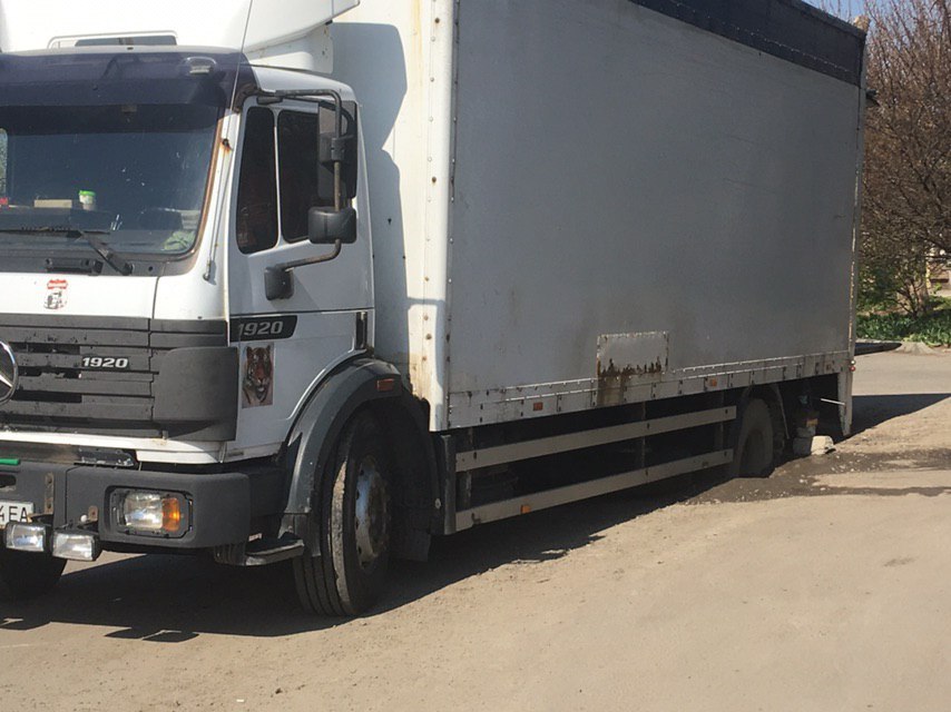 На кадрах с места событий видно, что одно из колес скрылось в яме наполовину.
