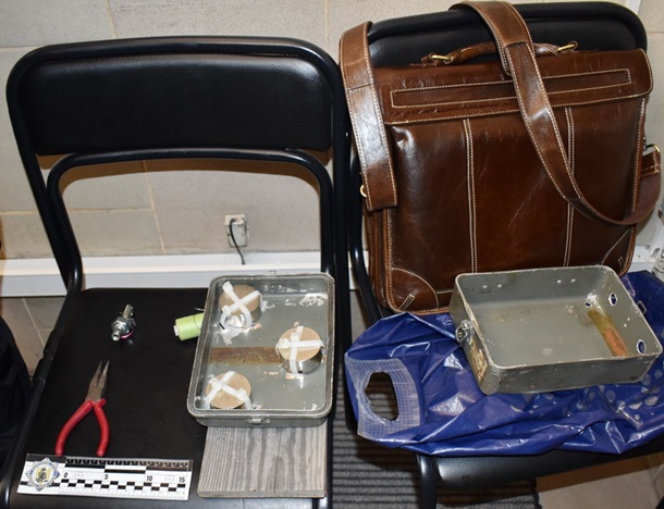 Речь идет о небольшом металлическом ящике с предметами похожими на взрывоопасные. К нему был прикреплен запал ручной гранаты УЗРГМ.