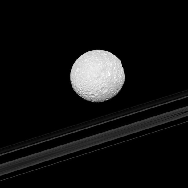 Из-за этого космическое тело имеет сходство со Звездой Смерти из фильмов Звездные войны.Отмечается, что фото были сделаны с помощью космического корабля Кассини. Он находился на орбите Сатурна в 2004-2017 годах.