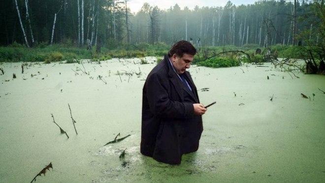 Так, на одной из работ Саакашвили изображен стоящим посреди болота с мобильным телефоном в руках. Так в сети отреагировали на заявление известного политика о том, что "Украину нужно вытягивать из болота". Об этом он написал на своей странице в Facebook.