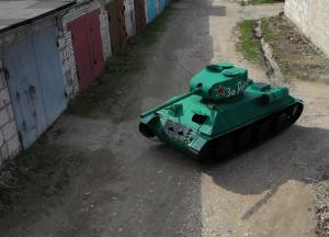 Создатель танка - механик-любитель Владислав Болдырев сначала сделал небольшую модель танка, а потом поспорил с женой, что к 9 мая сможет собрать большую модель танка.