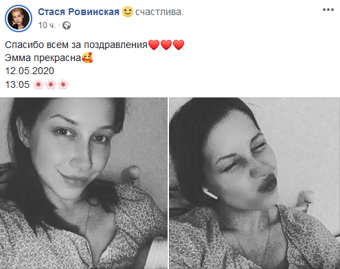 Молодая мама подтвердила, что родила дочку, опубликовав в Фейсбук первое фото с новорожденной девочкой. "Спасибо всем за поздравления. Эмма прекрасна", - написала 27-летняя Стася.
