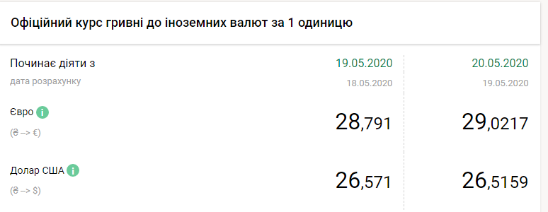 Национальный банк Украины на среду, 20 мая, укрепил курс гривны на 5 копеек по отношению к доллару, однако, по отношению к евро гривна ослабла сразу на 23 копейки,передает FaceNews.ua. Об этом свидетельствуют данные на сайте НБУ во вторник, 19 мая.