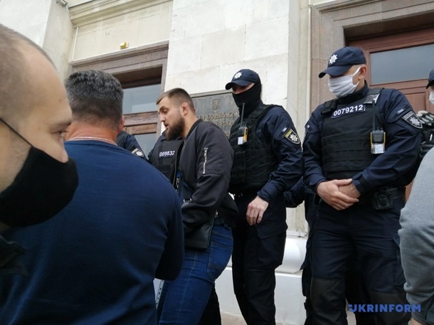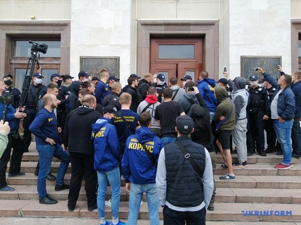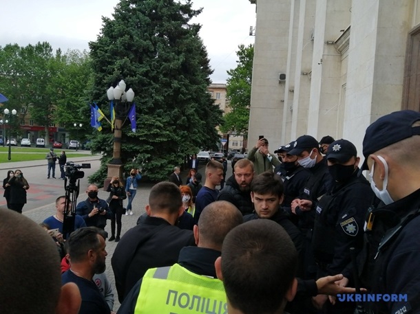 Представители Нацкорпуса собрались на площади Свободы, возле здания ОГА и облсовета. Акция была мирная, участники провозгласили, что сформулировали свои требования об отставке главы ОП Андрея Ермака в письменном виде и хотят, чтобы эти требования как документ были официально приняты в облгосадминистрации. Несколько таких представителей двинулись ко входу в ОГА, перекрытому правоохранителями, которых было также около 30 человек.