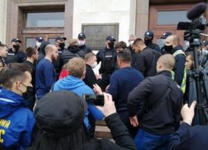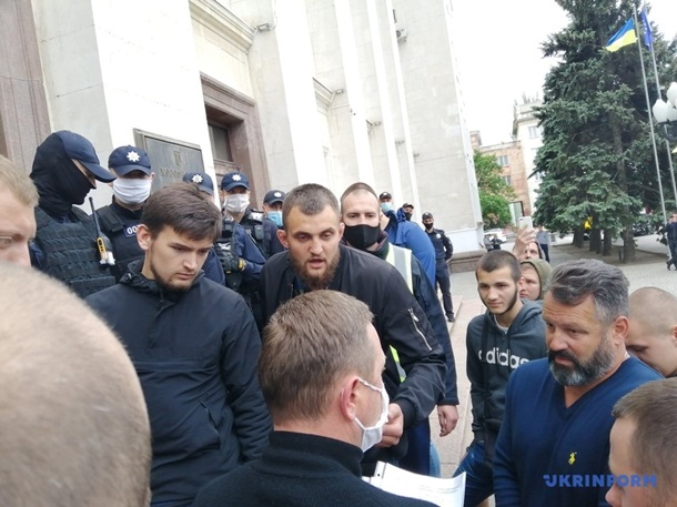 К протестующим вышел первый замглавы ОГА Дмитрий Бутрий, который хотел принять письменные требования активистов Нацкорпуса. Однако они требовали, чтобы их пропустили в здание ОГА и приняли документ официально.