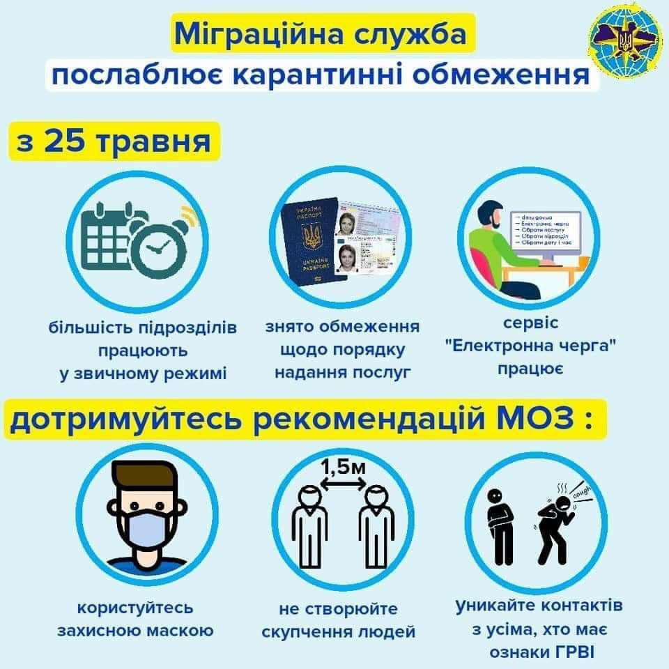 В рамках смягчения карантина из-за COVID-19 с 25 мая Государственная миграционная служба Украины возобновит работу в большинстве регионов, передает FaceNews.ua.