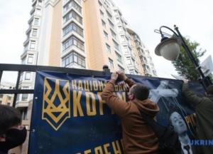Далее активисты двинулись вверх по улице Грушевского к Мариинскому парку. Они пришли к дому по адресу Грушевского, 9а, где, по их информации, проживает Зеленский.