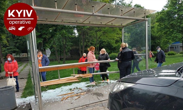 В Киеве автомобиль на скорости врезался в остановку (фото)