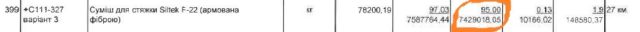 Армированная фиброй смесь для стяжки Siltek F-22 стоит 95 грн./кг. По данным из открытых источников, смесь Siltek F-22 не является армированной фиброй и продается в розницу по 125-154 грн. за упаковку на 25 кг, или 5-6 грн./кг. Армированной фиброй есть другая смесь того же производителя - Siltek F-35, однако она еще дешевле - 99-132 грн. за упаковку на 25 кг, или 4-5 грн./кг.