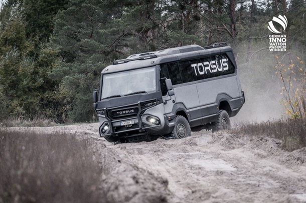Автобус-вездеход Torsus Praetorian, разработанный украинской компанией Pulsar Expo и словацкой студией Werkemotion, получил две премии Red Dot Design Award и German Innovation Award от немецких экспертов, передает FaceNews.ua. Транспортное средство наградили за инновации и выдающийся дизайн, говорится на сайте Torsus.