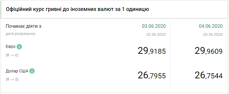 Национальный банк Украины на четверг, 4 июня, укрепил курс гривны на 4 копейки по отношению к доллару, но понизил на 4 копейки по отношению к евро, передает FaceNews.ua. Об этом свидетельствуют данные на сайте НБУ в среду, 3 июня.