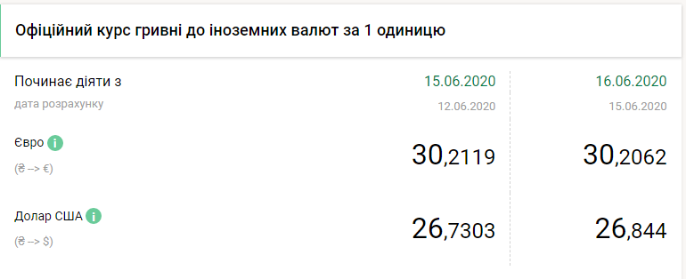 Национальный банк Украины на вторник, 16 июня, опустил курс гривны более чем на 13 копеек по отношению к доллару, но укрепил на полкопейки по отношению к евро, передает FaceNews.ua. Об этом свидетельствуют данные на сайте НБУ в понедельник, 15 июня.