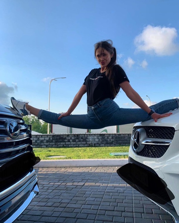 На фото в своем Instagram она позирует в шпагате между двумя роскошными автомобилями – Lexus и Mercedes.