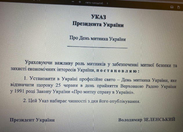 Кабинет министров Украины утвердил проект указа президента страны Владимира Зеленского о назначении Дня таможенника 25 июня, передает FaceNews.ua.