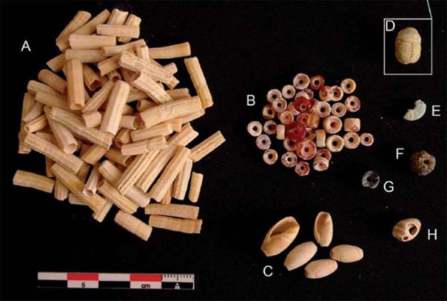Каменный скарабей покрыт египетской голубой глазурью и выгравирован стилизованным фараоном в традиционном головном уборе и удлиненной плиссированной юбке или килте, украшенной выступающими из него кобрами. Это конкретное открытие, а также обнаружение других египетских артефактов, указывает на древние торговые отношения между жителями Домат аль-Джандал и древним египетским Новым царством, которые доминировали с 16 по 11 век до нашей эры.