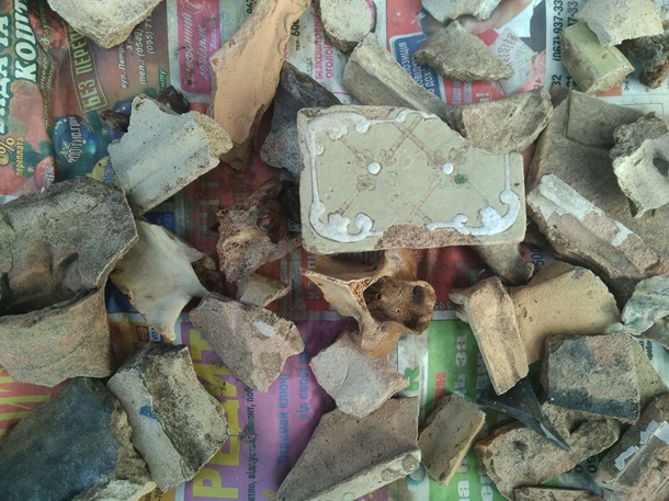 При раскопках была найдена характерная керамика, лепнина и кости.