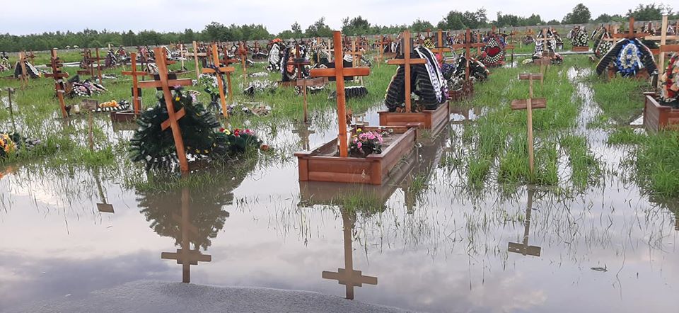 Также из-за значительных осадков часть кладбища в Чукаловке Тисьменницкого района оказалась под водой. Вокруг могил выкопали траншеи, чтобы оборудовать водоотводный канал и ежедневно вода откачивается. Но когда идет дождь, вода снова возвращается.