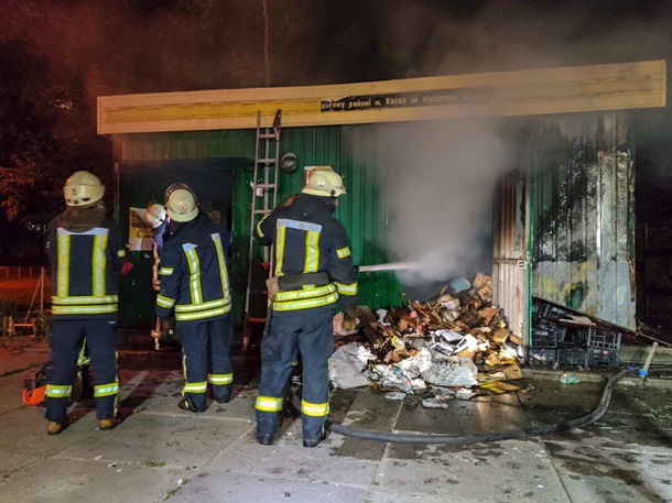 Спасатели сообщили, что на улице Ревуцкого, 7В в Дарницком районе столицы около 9-ти этажного жилого дома в овощном металлическом павильоне возник пожар с последующим распространением огня на соседний металлический павильон по приему вторсырья.