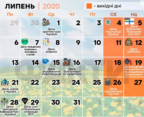 Так, в июле будет восемь выходных и 23 рабочих дня. Отдыхать украинцы смогут в субботу-воскресенье: