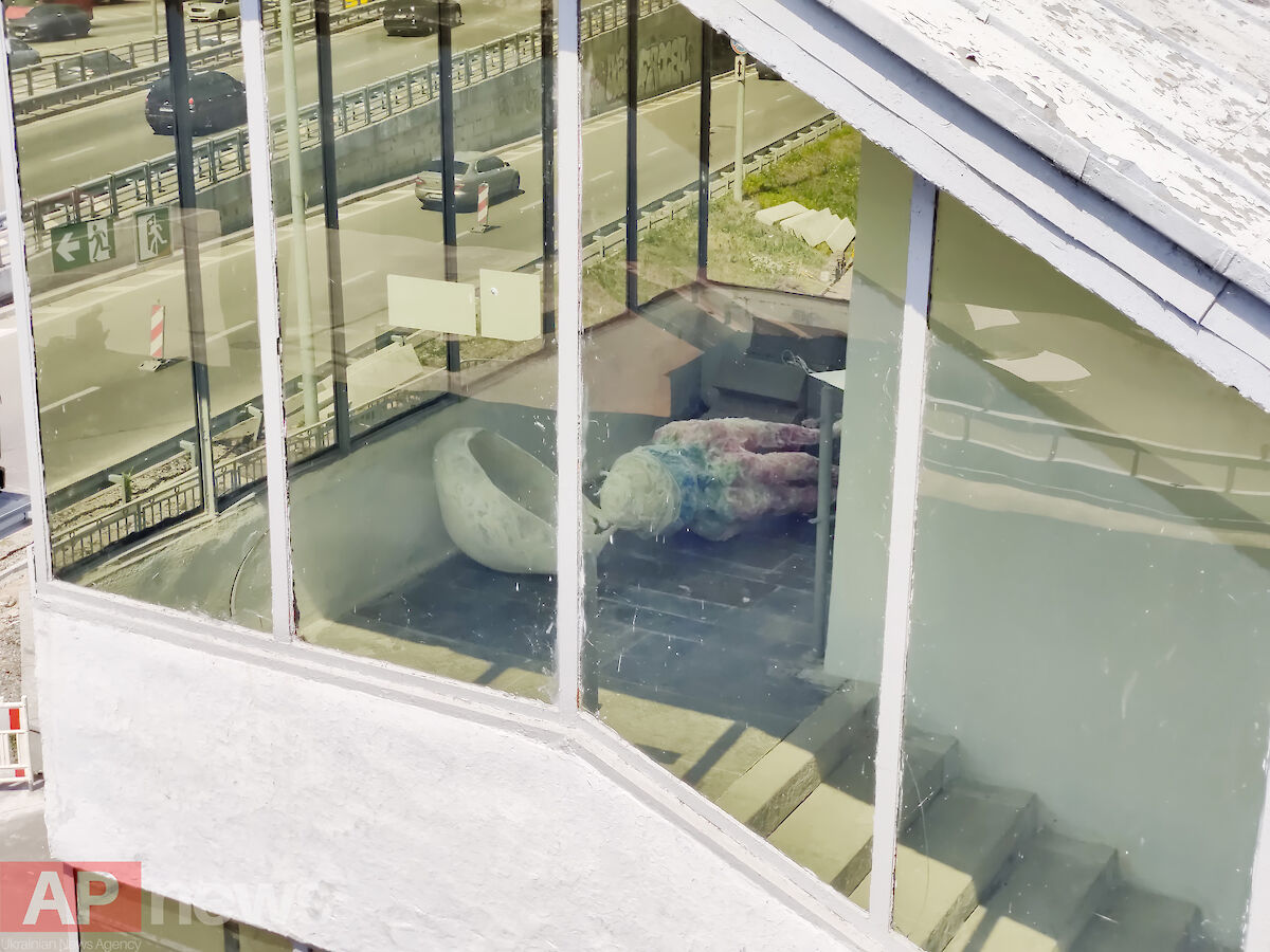 Сегодня утром оказалось, что скульптура "Медуза LPDE" высотой почти в рост человека уже лежит на полу разбитая.