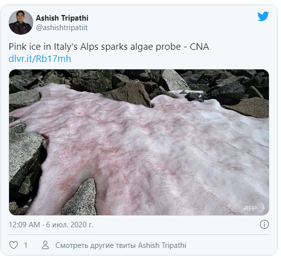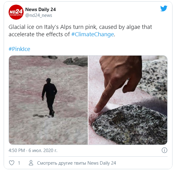 Сейчас идут споры о том, откуда взялись водоросли, окрасившие ледники в Альпах в розовый цвет. По мнению Бьяджо Ди Мауро из Национального исследовательского совета Италии, розовая окраска льда, вероятно, вызвана тем же растением, что окрасило ледники Гренландии.