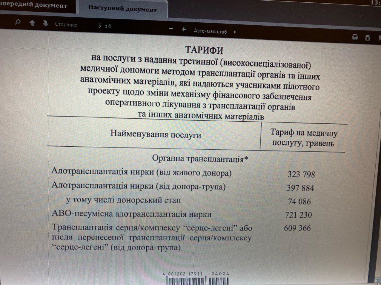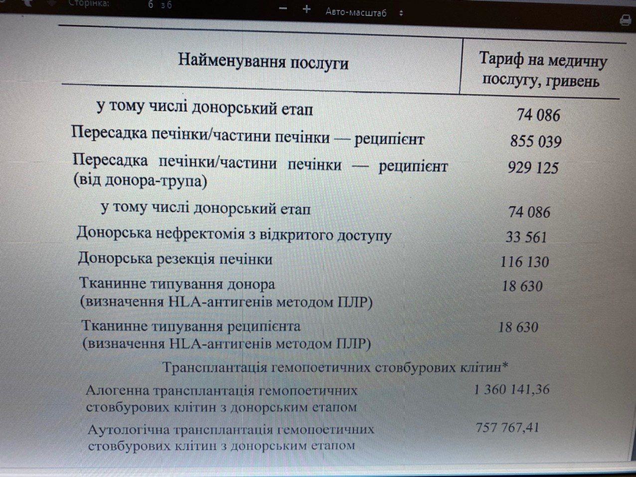 Так, самая дешевая операция – пересадка почки от живого донора – будет стоить 323,7 тыс. грн. Стоимость пересадки печени составит от 855 тыс. до 929 тыс. грн (без учета сопутствующих тестов и операций). Самая дорогая операция – аллогенная трансплантация гемопоэтических стволовых клеток обойдется в более чем 1,3 млн грн.