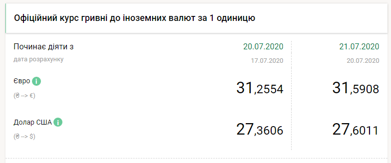 Национальный банк Украины на вторник, 21 июля, опустил курс гривны 24 копейки по отношению к доллару и на 33 копейки по отношению к евро. Об этом свидетельствуют данные на сайте НБУ, передает FaceNews.ua.