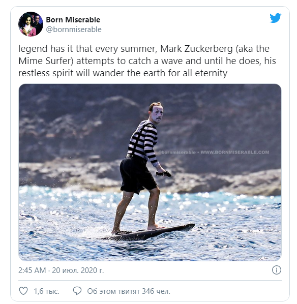 Марк прекрасно справлялся с серфбордом. Но пользователей повеселил густой слой солнцезащитного крема на лице Цукерберга.