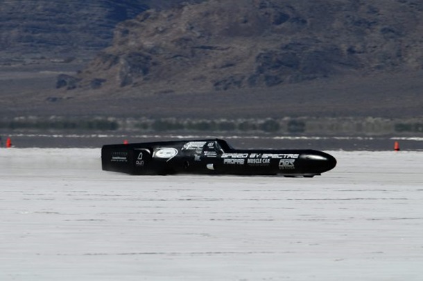 Свой главный рекорд "ракетомобиль" показал в 2010 году. На соляном озере Бонневиль в США он развил скорость до 658 километров в час. Этот рекорд держится до сих пор.