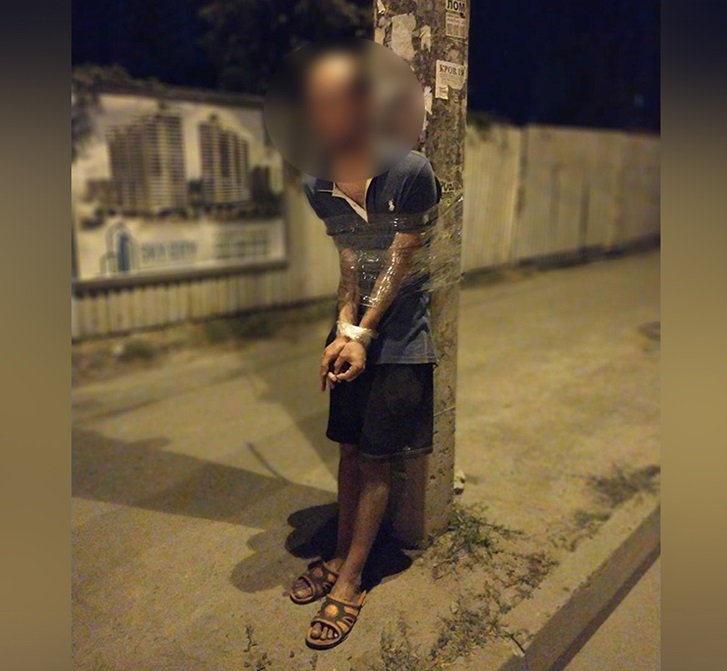 В Днепре привязали скотчем к столбу извращенца, который приставал к детям (фото)