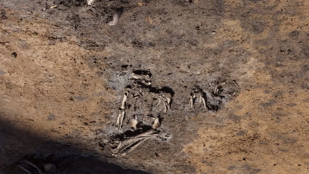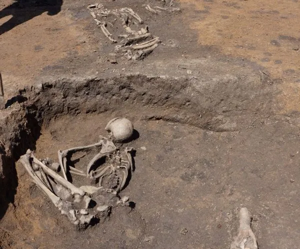 В одной из могил были найдены останки мужчины и ребенка. Также обнаружены останки женщины, лежащей на животе, и мужчины, тело которого было погребено особым образом.