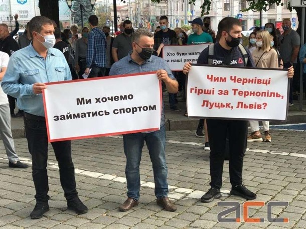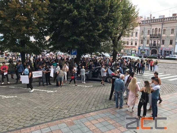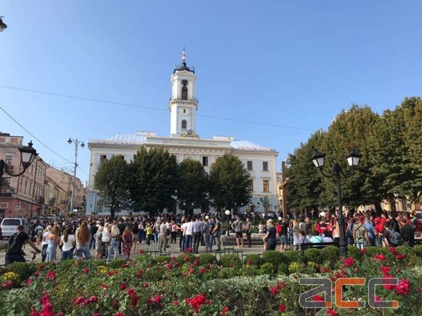 В Черновцах возле стен Ратуши проходит митинг против усиления карантинных ограничений, передает FaceNews.ua.