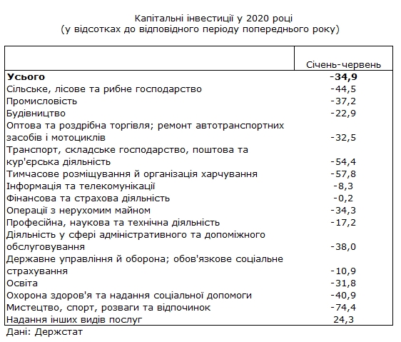 По данным Государственной службы статистики Украины, снижение инвестиций было зафиксировано во всех отраслях.