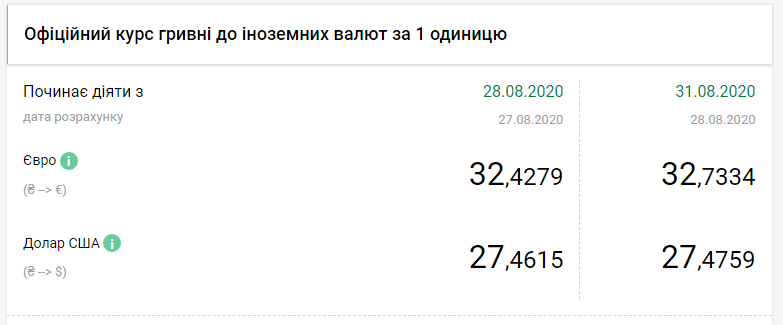 Национальный банк на понедельник, 31 августа, ослабил официальный курс гривны к европейской валюте до 32,7334 грн/евро по сравнению с 32,4279 грн/евро днем ранее, передает FaceNews.ua. Об этом говорится в сообщении НБУ.