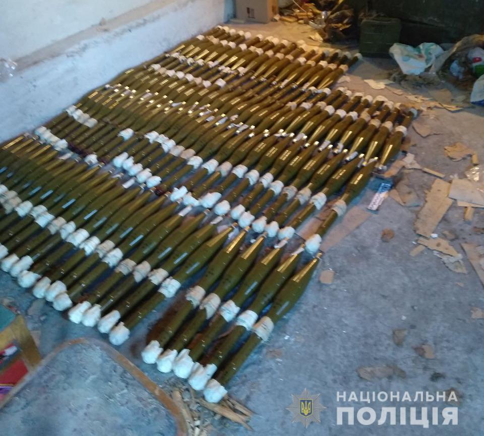 "В подвальном помещении гаража изъяли 472 корпуса ручных гранат различного типа, 480 запалов типа "УЗРГМ", 668 гранатометных выстрелов различного типа, 121 пусковых ракетных двигателей, 49 реактивных противотанковых гранат различного типа, 66 ручных дымовых гранат. Также изъято 20 сигнальных, осветительных, минометных и противопехотных мин", - говорится в сообщении.