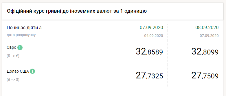 Курс валют на 8 сентября: гривна немного подешевела
