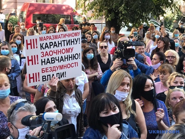 В Черновцах люди протестуют против закрытия школ и садиков на карантин (фото)