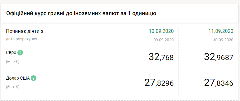 Национальный банк Украины на пятницу, 11 сентября, опустил курс гривны на 0,5 копейки по отношению к доллару и на 20 копеек по отношению к евро, передает FaceNews.ua. Об этом свидетельствуют данные на сайте НБУ.